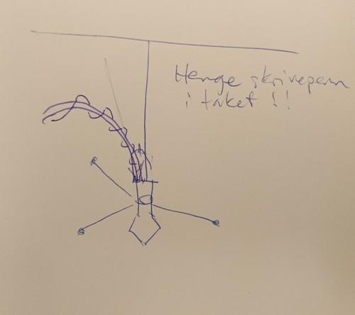 The handwriting says "Suspend print pen in the ceiling!!". And that was really all I wanted to add to the already fabulous RepRap Project.