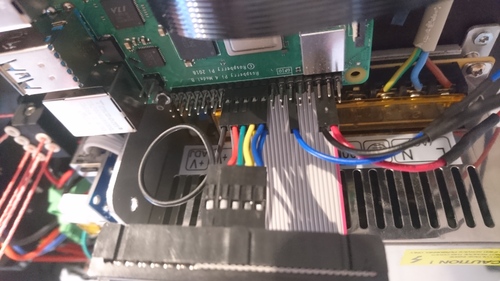 You can now shut down your Rapsberry Pi. Disconnect the display, keyboard, and mouse. Connect your Raspberry Pi to the Duet3 MB6HC board with the ribbon cable that is included in the Duet3 MB6HC package.
