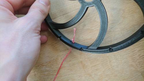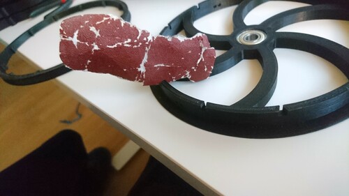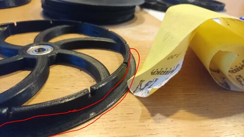 The line is easy to fray, and 3d-printing sometimes leaves sharp and pointy edges. It's therefore recommended to sand down the inside of the spool disc, like this: